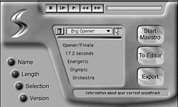 SmartSound offers a fast and intuitive way to create soundtracks of any style music and any length, with or without a QuickTime picture reference. Two separate features, Maestro and Smart Blocks (with its editor and graphical, drag-and-drop interface), make producing or editing music quick and easy. On the CD-ROM there is even a small production music library that covers many different music styles and is exceptionally well recorded. Other production music companies are now making their libraries available for SmartSound, as well. The CD-ROM includes a few samples from these libraries, all of which sound very good. The Macintosh version is more powerful than that for the PC; it lets you record directly into SmartSound to create your own Smart Blocks, whereas the PC version does not. For the PC you need to use another application to record music blocks. You can, however, import music into both versions. The Mac version also allows users to export the music as Sound Designer II and QuickTime files; the PC doesn't. SmartSound exports song files as 44.1k to 11k, 16-bit or 8-bit, in stereo or mono. The minimum CPU requirement on a Mac is an 020 processor. (What to do with your old Mac? Set up a SmartSound station!) For PCs, a 386 CPU or higher with Windows 95/98 or NT and an 8- or 16-bit sound card is all you need. With the production music libraries that are available for SmartSound, just about any musical feeling can be conveyed, with very high quality, in a matter of minutes. SmartSound can be contacted at (800) 454-1900, or on the web