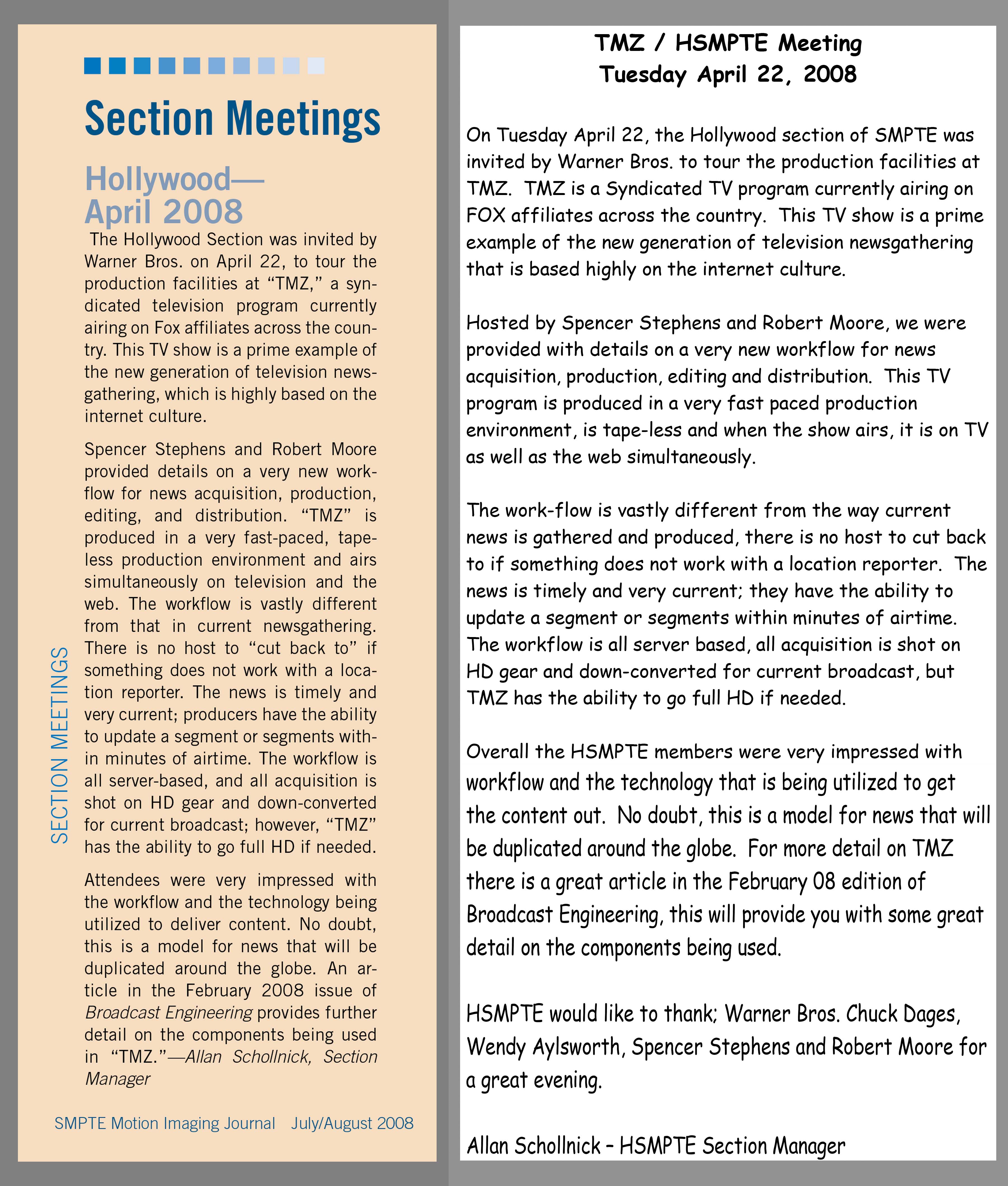 the Hollywood section of SMPTE was invited by